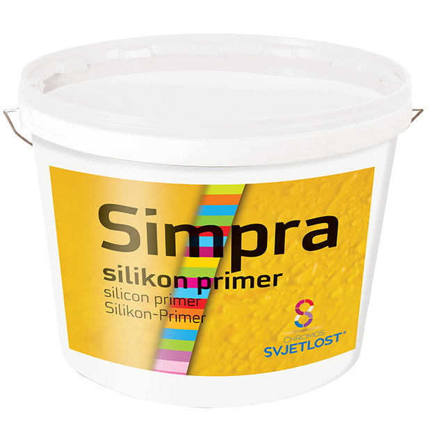 A basecoat undercoat under SIMPRA silicone paint. SIMPRA primer is used to reduce the absorption of mineral surfaces while simultaneously binding particles of the surface and creating hydrophobicity most often on the exterior surfaces prior to coating with silicone paint. It is suitable for all types of mineral surfaces (lime, lime-cement or cement plaster, concrete, gypsum-boards and fibrecement boards). Unsuitable surfaces are stone, wood and plastics and all large horizontal surfaces. It protects the colour of the aggressive factors from the wall. Regulates the absorption and increases the adhesion of paint.