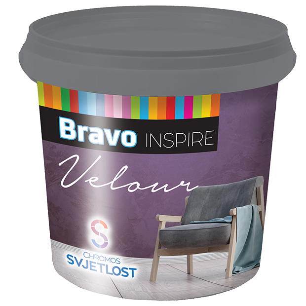 It is produced in silver and gold base. BRAVO INSPIRE VELOUR shades can be made by Top Mix tinting system CHROMOS-SVJETLOST.