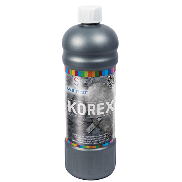 KOREX is an effective rust remover. It is used in industry as well as in households to remove rust from metal surfaces that are which are further treated with primers: KEMOLUX AK metal primer / KEMOLUX Uuniversal AK quick drying primer / Kemodur S / Kemocel metal primer / Hardlux DS metal primer / Hardlux foundation and metal primer, and adequate topcoat.