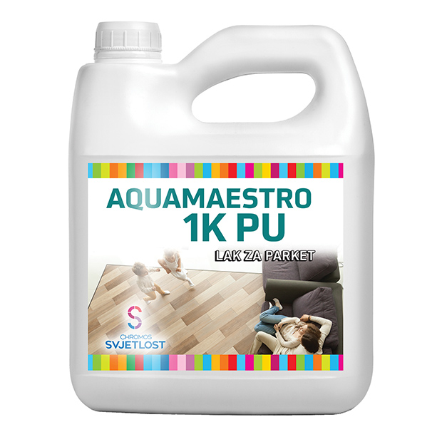 AQUAMAESTRO is a single-component, polyurethane, water-based, colourless lacquer for the protection and decoration of parquet and other indoor wood surfaces under medium to high load. It is characterized by durability, great film thickness and resistance to wear and tear.
