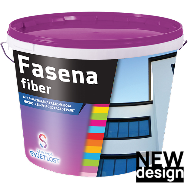 FASENA FIBER je fungicidno zaščitena akrilna fasadna barva z vlakni. Služi za barvanje kompaktnih in bolj grobih ometanih fasadnih površin in za barvanje ometanih površin z vidnimi lasastimi razpokami do 0,3 mm ter pri sanacijah starih betonskih podlag.