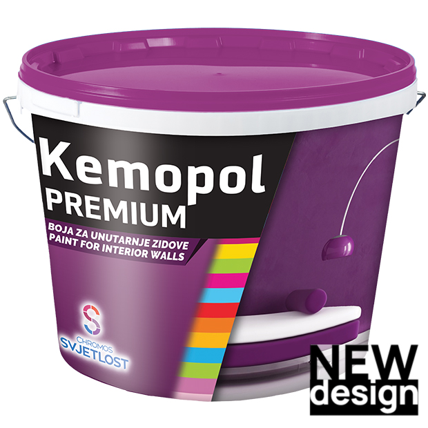 Kemopol premium je ekološka disperzijska barva za notranje zidove z izrazito belino in zelo visoko pokrivnostjo. Tvori čvrst, obstojen in elastičen premaz, ki se lahko pere.